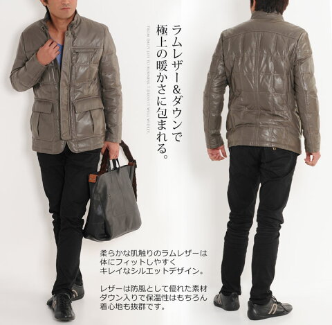 ギフト:ラッピング無料 品番:05000044r お問い合わせの際は、コチラの品番をお伝えください 商品名:ラム革 メンズ ダウン ジャケット / トープ ※保管方法 ・水に濡れたときには乾いた布で水分をふき取り、直射日光をさけ、自然乾燥させてください。