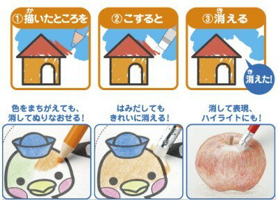 【特長】 ・フリクションインキを搭載した「フリクションいろえんぴつ」は 驚くほどにきれいに消える色鉛筆です。
